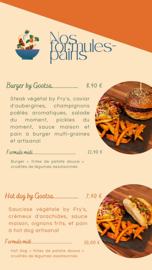 Gootsa, c’est une offre de restauration sans protéines animales, évoluant au gré des saisons et des disponibilités du marché local. On y retrouve entre autres des assiettes chaudes, des bowls ou encore des burgers, alliant apport énergétique et saveurs péï.