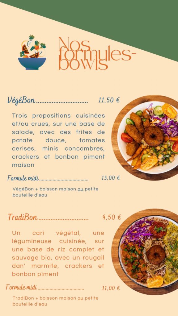 Karma est une adresse qui est plutôt connue des Dionysiens ! Ces bowls font la part belle aux produits locaux, bio et de saison (évidemment, tout n’est pas local, les céréales notamment). Il y a toujours une alternative végétarienne ou vegan !